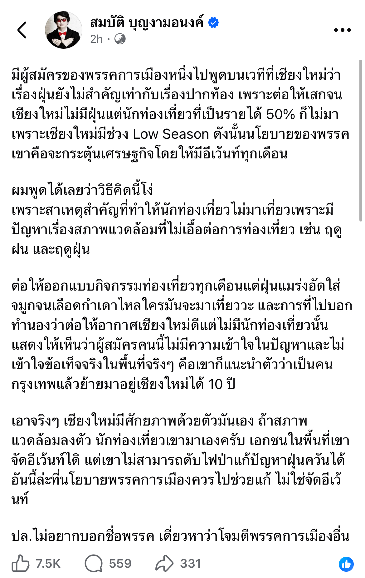 และเอาจริงๆมันทำไปด้วยกันไม่ได้รึไงฟระ pm เชียงใหม่ช่วงพีคๆนี่ 150 200 300 มันอยู่กันไม่ได้นะ