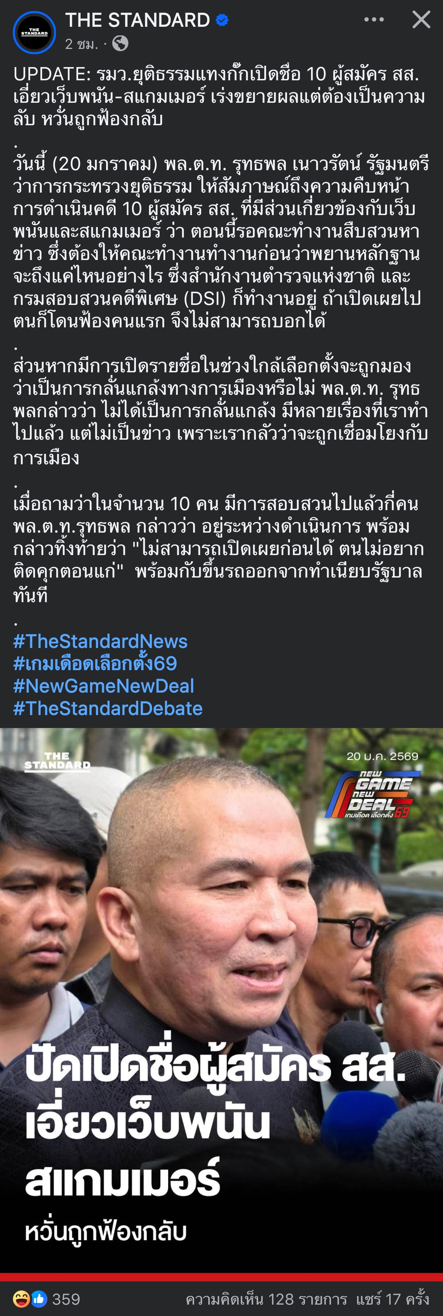 [RE: รมว.ยุติธรรมแทงกั๊กเปิดชื่อ 10 ผู้สมัคร สส. เอี่ยวเว็บพนัน หวั่นถูกฟ้องกลับ]
