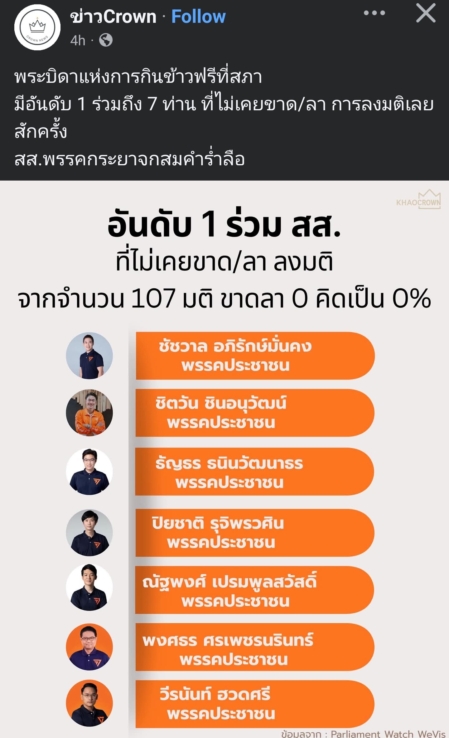 [RE: 7 ส.ส. ขาด/ลา ลงมติสภา 0%]