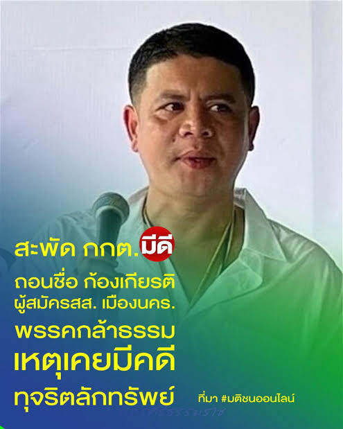 เมื่อวันที่ 22 มกราคม 2569 มีรายงานว่าสำนักงานกกต.ได้มีหนังสือแจ้งไปยังสำนักงานกกต. ประจำจังหวัดนครศรีธรรมราชว่า กกต.ได้พิจารณาเรื่องการวินิจฉัยสิทธิสมัครรับเลือกตั้ง สส.จ.นครศรีธรรมราช เขต 7โดยสั่งให้ถอนชื่อนายก้องเกียรติ เกตุสมบัติ จากพรรคกล้าธรรม ออกจากประกาศรายชื่อผู้สมัครรับเลือกตั้ง โดยให้ผู้อำนวยการการเลือกตั้งประจำจังหวัดนครศรีธรรมราชดำเนินการแจ้งผู้เกี่ยวข้องตามระเบียบกกต.ว่าด้วยการเลือกตั้งส.ส 2566 และที่แก้ไขเพิ่มเติมทราบโดยเร็ว และให้แจ้งสิทธิ์ในการอุทธรณ์แก่ผู้สมัครที่ถูกถอนชื่อ