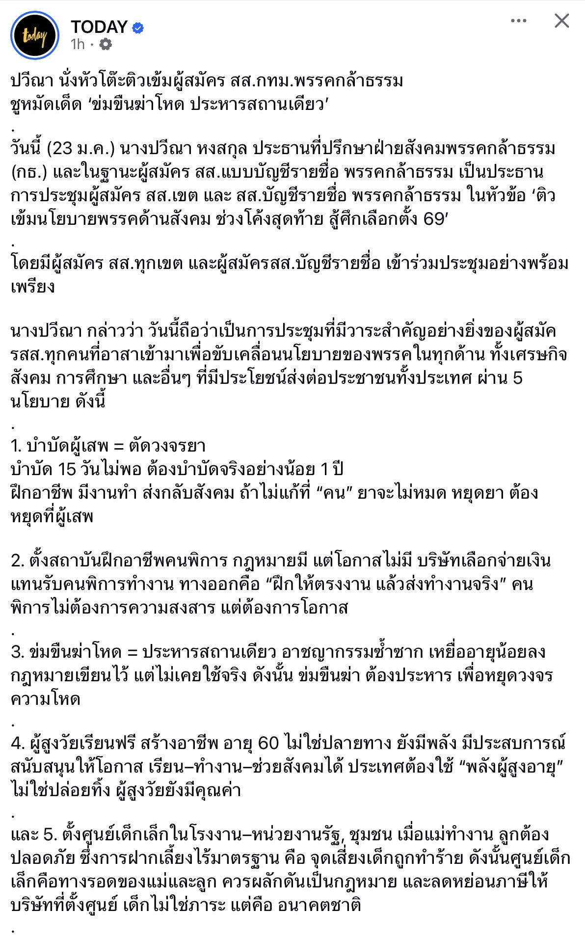 [RE: ปวีณา ติวเข้มพรรคกล้าธรรม “ข่มข่นฆ่าโหด ประหารสถานเดียว"]