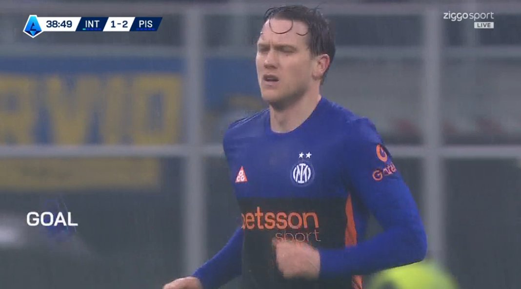 เกิดอะไรขึ้นกับ อินเตอร์ ครับเนี่ย?! กลายเป็น ปิซ่า ที่บุกน้อยกว่าแต่พวกเขาใช้โอกาสไม่เปลืองเลย มาได้ประตูที่สองจากลูกเตะมุม ตราโมนี่ เปิดเข้าหัว มอเรโอ โฉบมาขวิดเสาแรกเลย ตุงตาข่าย