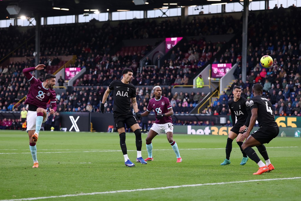 สเปอร์สน่าได้จากลูกยิงไกลไปติดเซฟ ดูบราฟก้า ได้ซ้ำอีกดอก ก็ติดเซฟมือกาวเบิร์นลีย์เหมือนเดิม