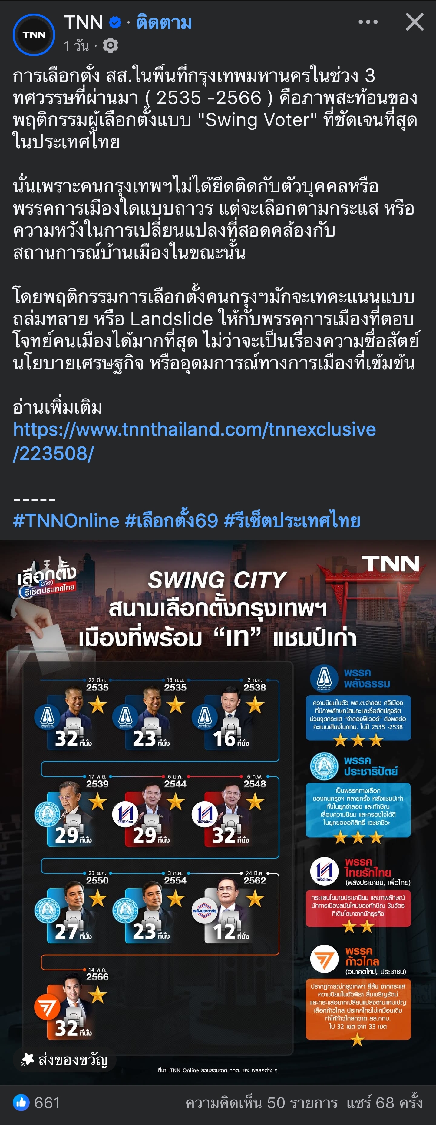 [RE: Swing City สนามเลือกตั้งกรุงเทพฯ เมืองที่พร้อม "เท" แชมป์เก่า]