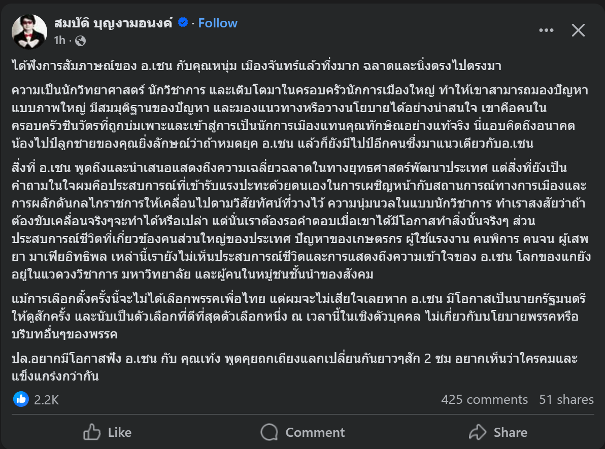 'เค้าคิดว่าจะเอาเศรษฐกิจมานำการเมืองได้ เศรษฐกิจดีได้การเมืองก็ดีได้ แต่เหมือนเค้าจะคิดผิด'