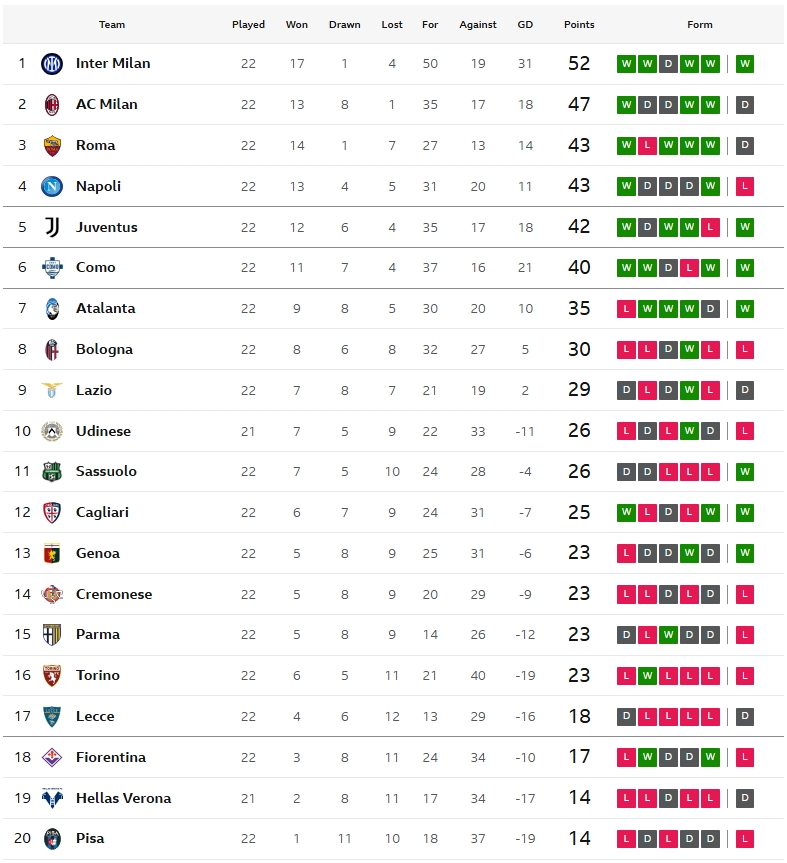 สรุปผลเซเรีย อา อิตาลี