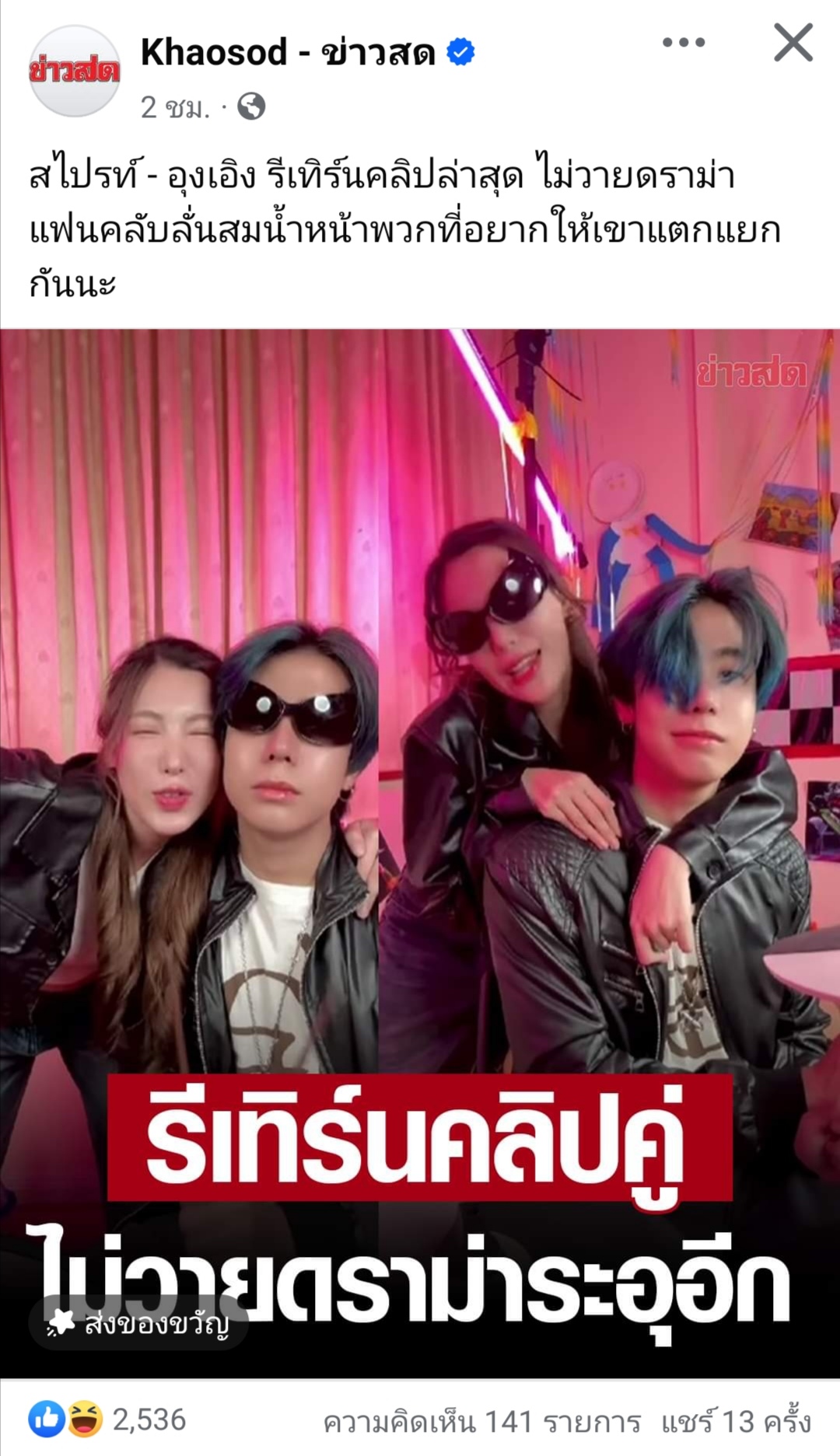 หวาน​เจี๊ยบ! สไปรท์​ SPD​ -​อุงเอิง​ รีเทิร์น​คลิป​คู่​กันแล้ว​ ด้าน​ FC​ ทั้งคู่​บอกสมน้ำหน้า​พวกกองแช่ง​ 'เป็น​ไงเขาคืนดีกันแล้ว'​