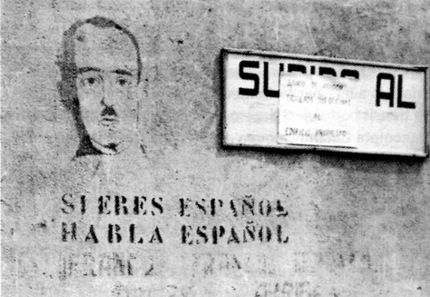 ภาพนี้แปลได้ว่า "เป็นคนสเปนก็ต้องพูดภาษาสเปนกันนะ(โว้ย)"