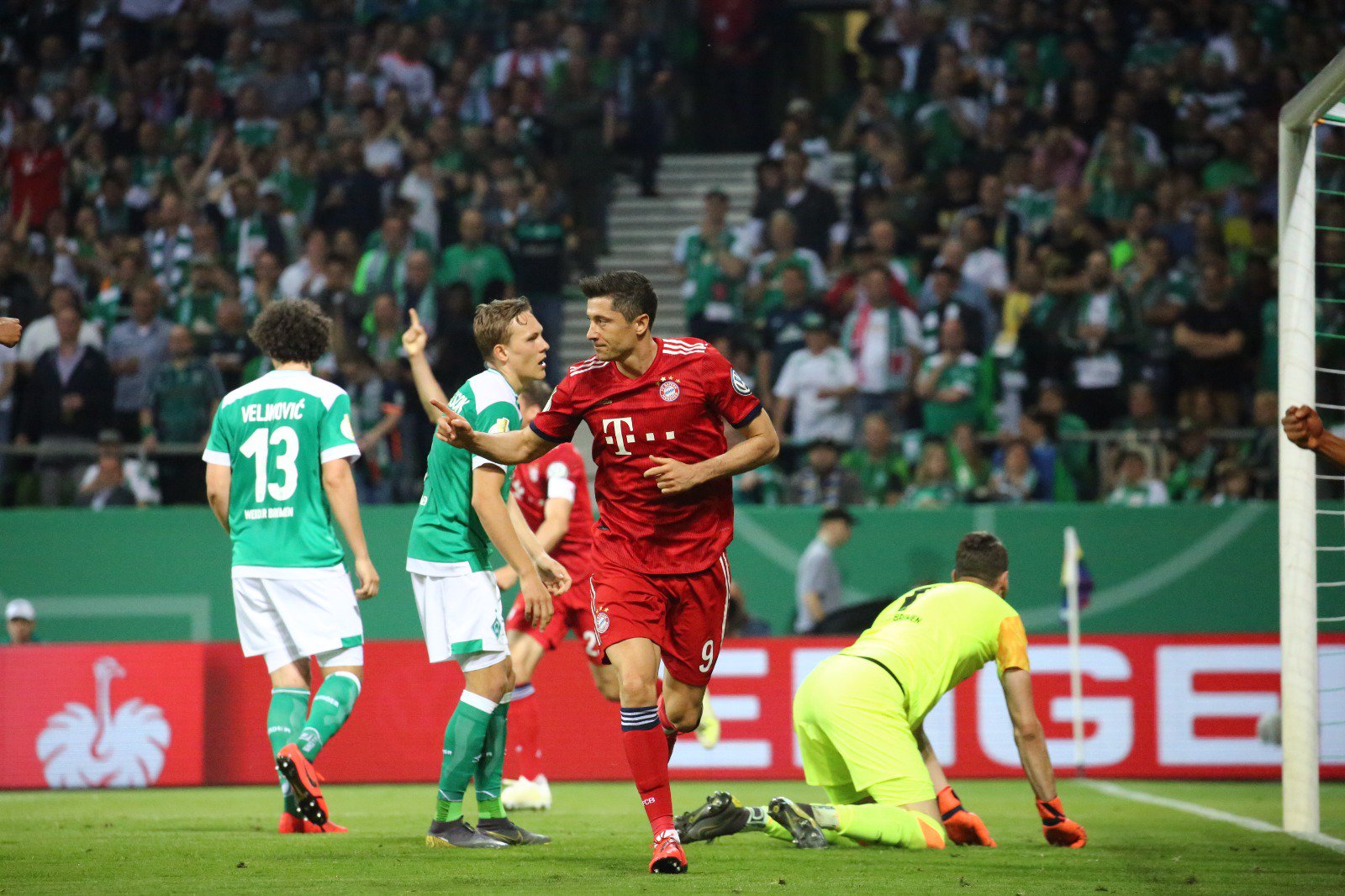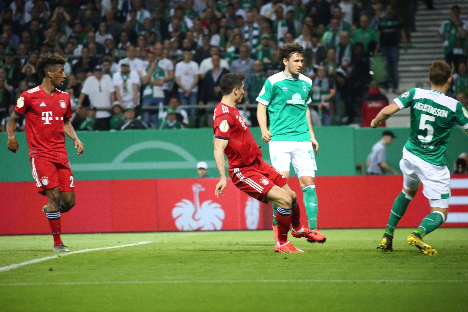 เกมอย่างลุ้นเลยเมื่อบาเยิร์น มิวนิคออกนำ 2-0 ได้แต่แวร์เดอร์ เบรเมนก็มายิงเบิ้ลในเวลาห่างกันแค่นาทีเดียวตามตีเสมอ จนแล้วจนรอดได้จุดโทษในนาที 80 โรเบิร์ต เลวานดอฟสกี้สังหารไม่พลาด เสือใต้ปาดเหงื่อเฉือนชนะนกนางนวล 3-2 เข้าไปเจอกับแอร์เบ ไลป์ซิกในเดเอฟเบ โพคาลนัดชิงชนะเลิศ