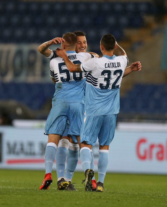 ลาซิโอไม่ปล่อยโอกาสอีกครั้งหลุดลอยขึ้นนำ 1-0 อิมโมบิเล่พาบอลขึ้นไปทางขวาไหลเข้ากลางให้ลูคัส เลว่าจ่ายไปในเขตโทษฮัวกิน คอร์เรอาคล้องหลบดานิโล่แล้วแปสวนตัวสโครุปสกี้ตุงตาข่ายอย่างเหนือชั้น