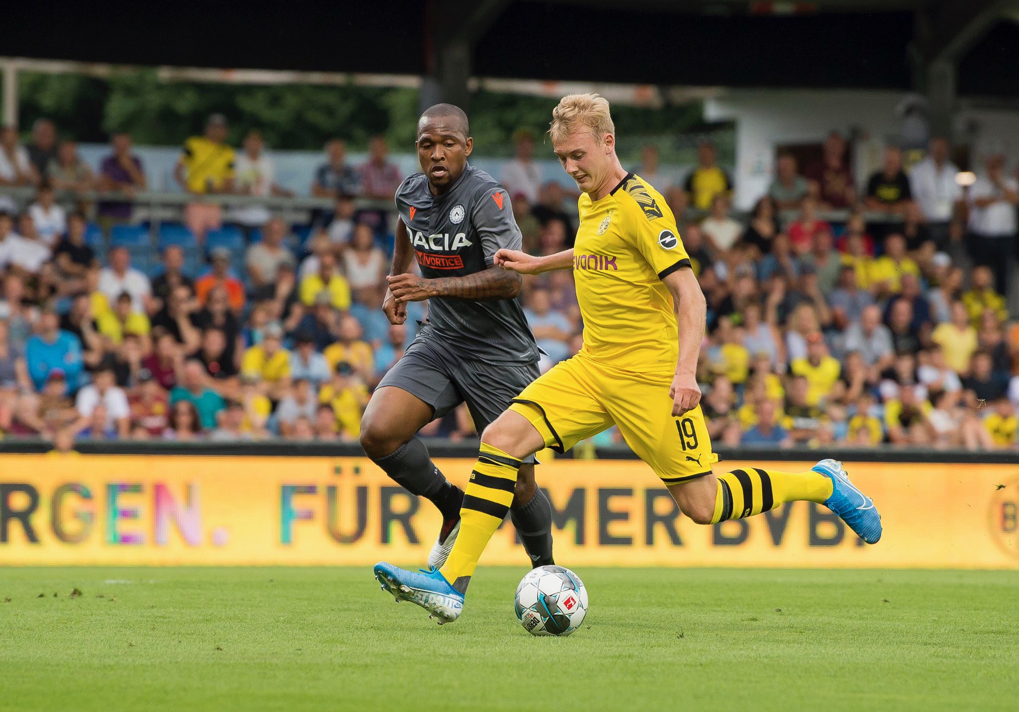 ไม่น้อยหน้าพี่ชายเหมือนกัน ธอร์แกน อาซาร์ ประเดิมพังประตูแรกภายใต้สีเสื้อ เสือเหลือง โบรุสเซีย ดอร์ทมุนด์เป็นฝ่ายบดขยี้ อูดิเนเซ่ ขาดลอย 4-1 พร้อมทำสถิติอุ่นเครื่องชนะ 3 นัดรวด