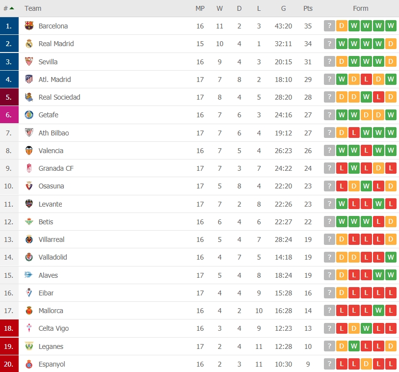 • เอสปันญอล เป็นทีมที่ยิงได้น้อยที่สุด(10)และเสียประตูมากที่สุด(30) ในลาลีก้าซีซั่นนี้