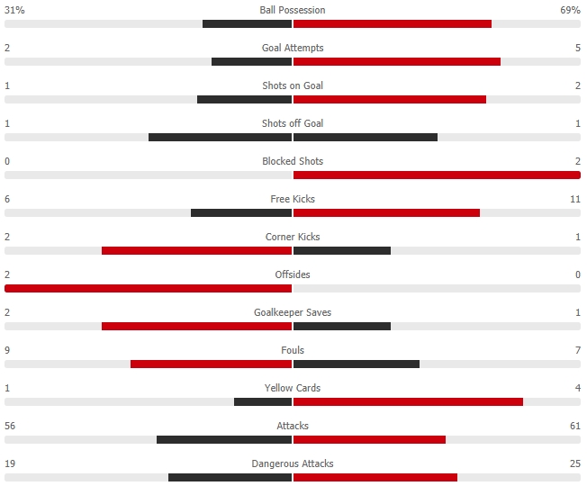 แฟนบอลบิลเบาได้เฮจากจังหวะที่วิลเลียมส์ชาร์จจังหวะต่อเนื่องจากเตะมุมแบบจ่อๆ ตุงตาข่าย แต่ก็เก้อไปเมื่อโดนผู้ตัดสินเป่าเป็นจังหวะล้ำหน้า