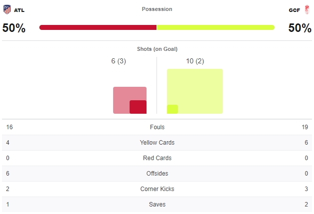 ครึ่งแรกเเป็นแอตเลติโก้ที่ได้ครองบอลและมีโอกาสลุ้นทำประตูมากกว่าเล็กน้อย ก่อนออกนำก่อน 1-0 จากลูกยิงหัววันของคอร์เรอา ครึ่งหลังยังน่าติดตามและต้องดูว่ากรานาด้าจะแก้เกมอย่างไรเพราะเกมรุกพวกเขายังไม่เป็นชิ้นเป็นอันเลย