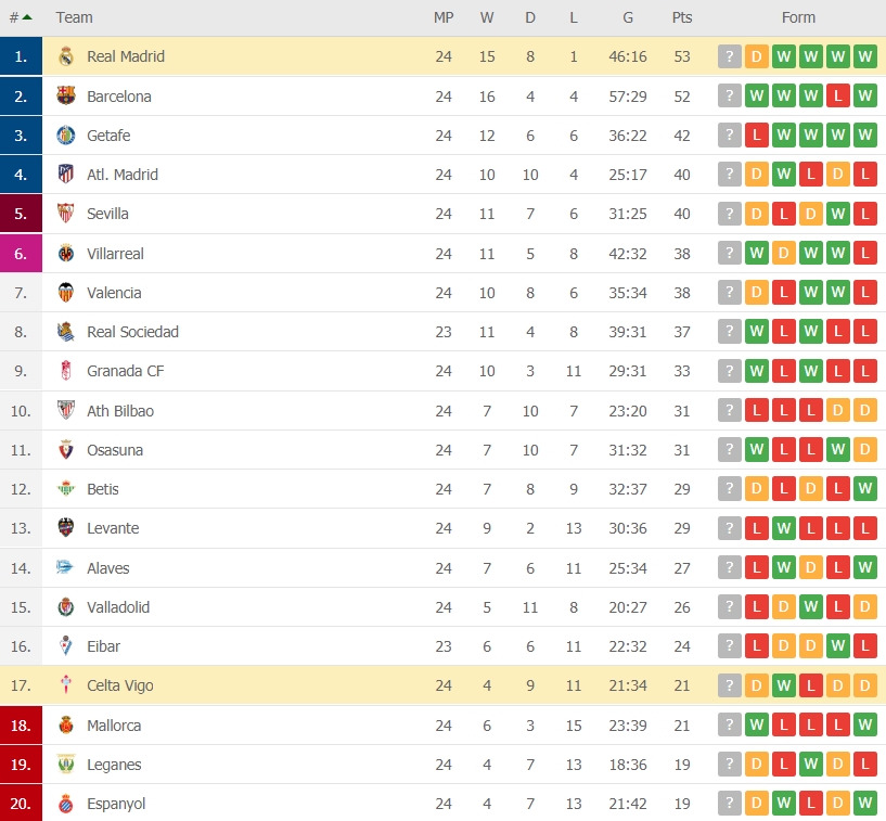 เซ็งไปเลยสำหรับเรอัล มาดริด หลังจากโดนนำเร็วแล้วอุตส่าห์ยิงแซงในครึ่งหลังจาก โทนี่ โครส และจุดโทษของ เซร์กิโอ รามอส แต่ท้ายนาที 85 เกมมาโดนทีเด็ดของ ซานติ มิน่า ที่หลุดซัดให้ทีมท้ายตารางอย่าง เซลตา บีโก้ บุกไปเจ๊า 2-2 ทีมราชันชุดขาวยังนำเป็นจ่าฝูงลาลีก้า มี 53 คะแนนจาก 24 นัด แต่ห่างจากบาร์เซโลน่าเหลือแค่แต้มเดียว