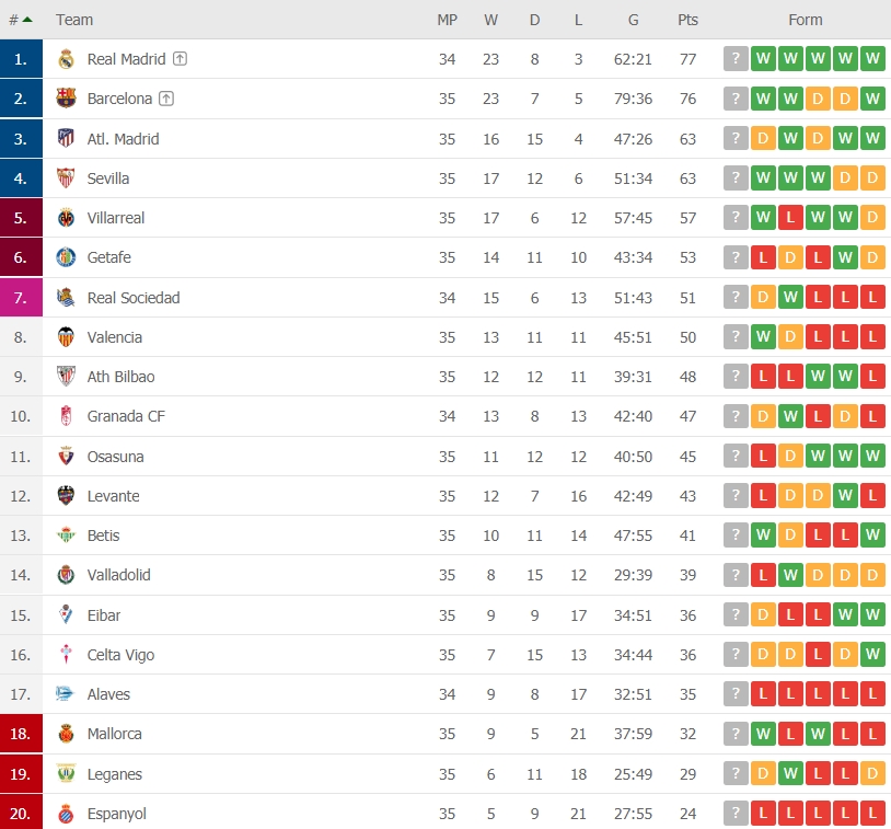 ลา เรอัล อันดับ 7 ของตาราง ฟอร์มค่อนข้างแย่และต้องการแต้มเพื่อเกาะกลุ่มพื้นที่ยุโรป สภาพทีมมีปัญหาตัวเจ็บเพียบทั้ง ลูก้า ซานกาญี(เข่า), อันเดร์ เกวาร่า(ข้อเท้า), อาเซียร์ อิญาร์ราเมนดี้(สะโพก), อัดนาน ยานาไซจ์(ต้นขา), โฆเซบา ซัลดูอา(เท้า) และเช็คฟิต ดาบิด ซูรูตูซ่า