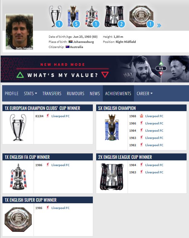 ตอนเป็นนักเตะผมยาวหัวฟูเลย เป็นนักเตะแอฟริกาใต้จำได้แม่นเลยเพราะตอนแรกนึกว่าเป็นออสเตรเลียน จำได้ลางๆว่าพอพวก จอห์น บาร์นส , เรย์ เฮาจ์ตัน เข้ามาแกก็ค่อยๆหลุดเป็นตัวสำรอง