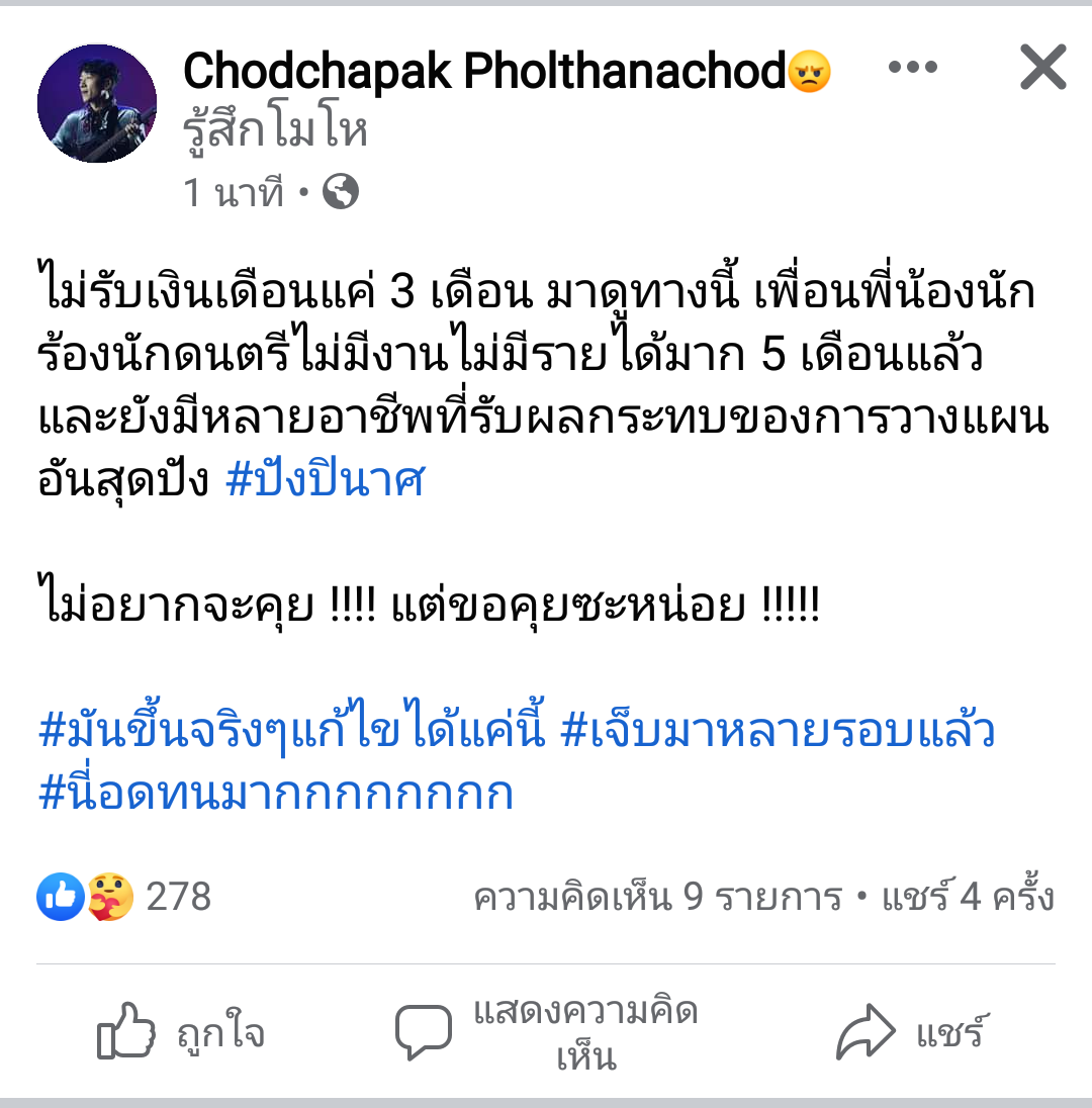 นักดนตรีหนักจริงโควิทเนี่ย ทั้งวงทั้งอิสระ ไหนจะพวกนักดนตรีกลางอีก พวกศิลปินดังๆๆยังพออยู่ได้