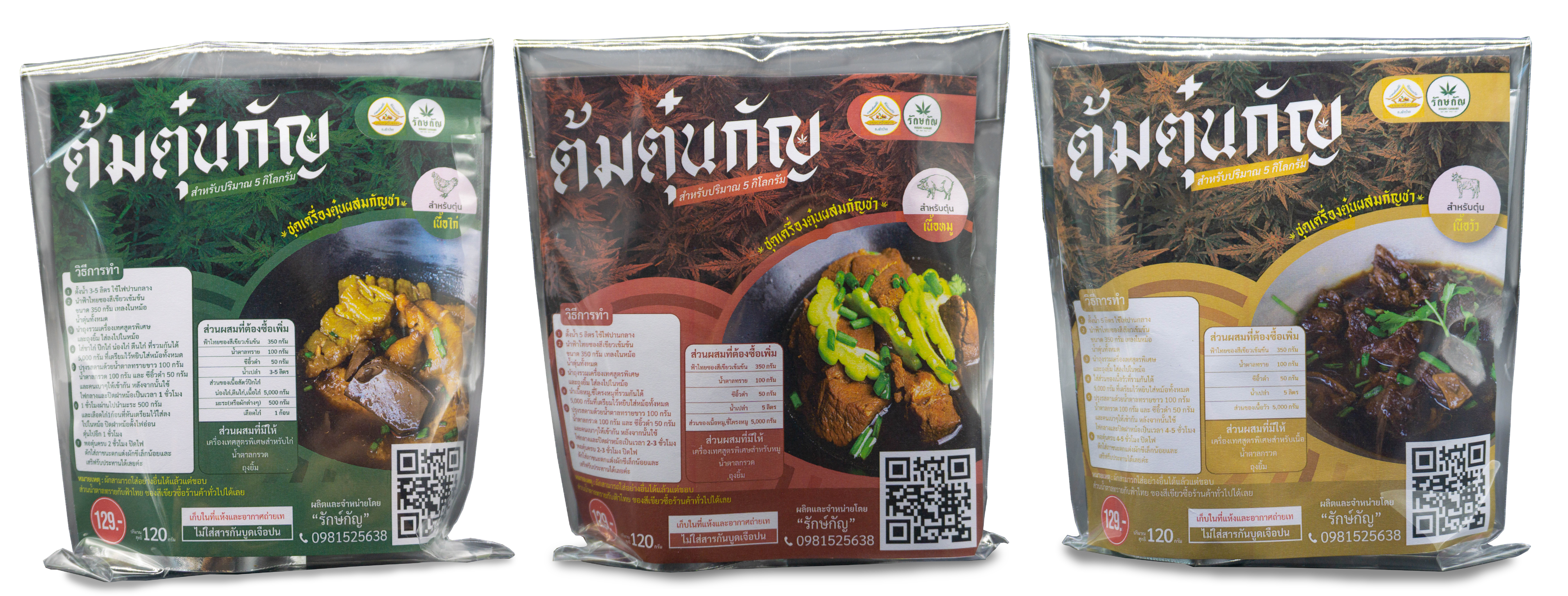 ถุงต้มตุ๋นกัญ เป็นถุงต้มตุ๋นสำเร็จ เพียงซื้อฟ้าไทยเขียว กับพวกเครื่องปรุงเพิ่ม แล้วโยนลงหม้อพร้อมเนื้อสัตว์ 2 โลได้เลย อร่อย อูมามิ ช่วงทดลองสินค้านี่ผมได้กินทุกวันครับ ปรับหวานเค็มได้ตามใจชอบเลย