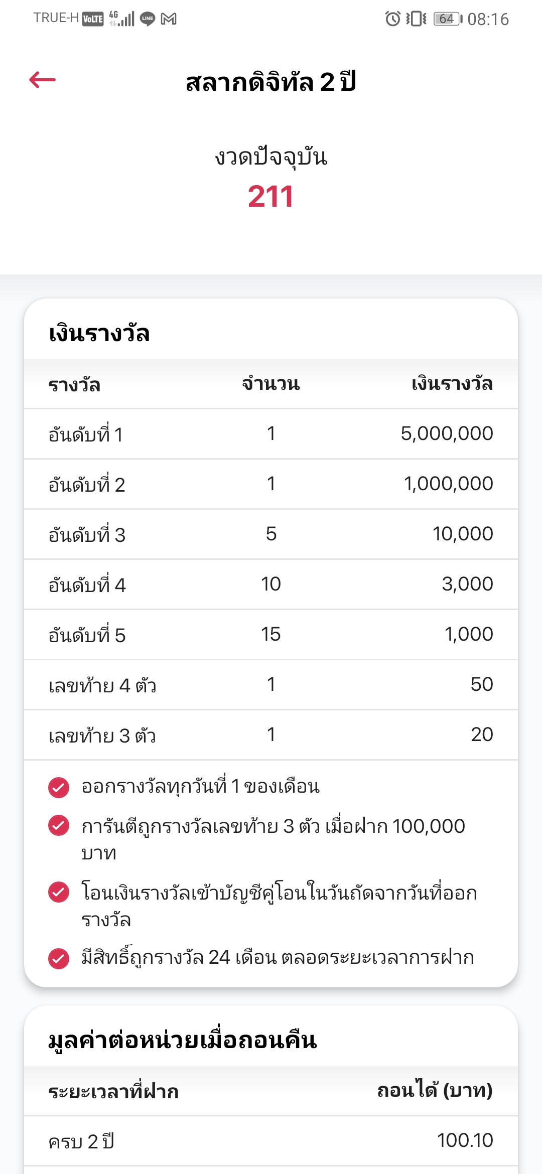 แฟนผมเพิ่งเอาสลากออมสิน ออกมาเมื่ออาทิตย์ก่อน เพราะบ่นว่ารางวัลน้อยมากๆ ครับ