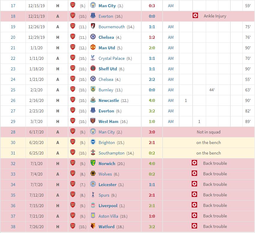 - หลังจากเบรคโควิด 3 เดือน โอซิลก็ไม่ได้ลงสนามอีกเลย โดยมีบางนัดที่อยู่ในม้านั่งสำรอง