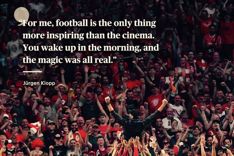 ผมได้เห็นว่าลูกบอลลูกเล็กๆ นั้นมีความหมายกับชีวิตของนักเตะของผมมากมายแค่ไหน คุณลองไปดูเส้นทางผจญภัยของโม ซาลาห์ ซาดิโอ มาเน่ โรแบร์โต้ ฟีร์มีโน่ และคนอื่นๆ อีกมากมายดูสิแล้วคุณจะเห็นความน่าเหลือเชื่อ