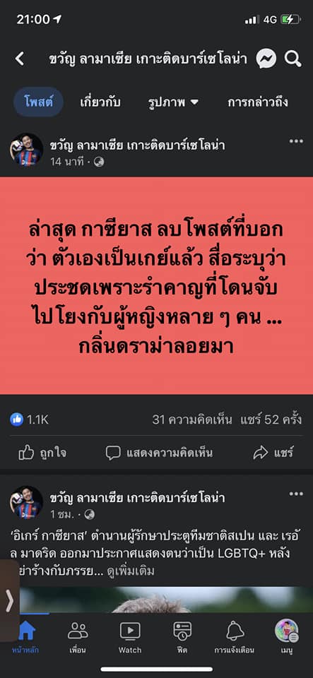 อิเคร์ กาซิญาส ลบทวิตของตัวเองทิ้งไปแล้วให้หลังจากโพสต์ว่าเขาเป็นเกย์ออกมาได้ประมาณชั่วโมงกว่าๆ