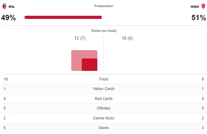 สุดท้ายจบครึ่งแรกเป็นมิลานที่เด็ดขาดกว่าและขึ้นนำไปก่อน 2-0 จากการเหมายิงของดิอาซ