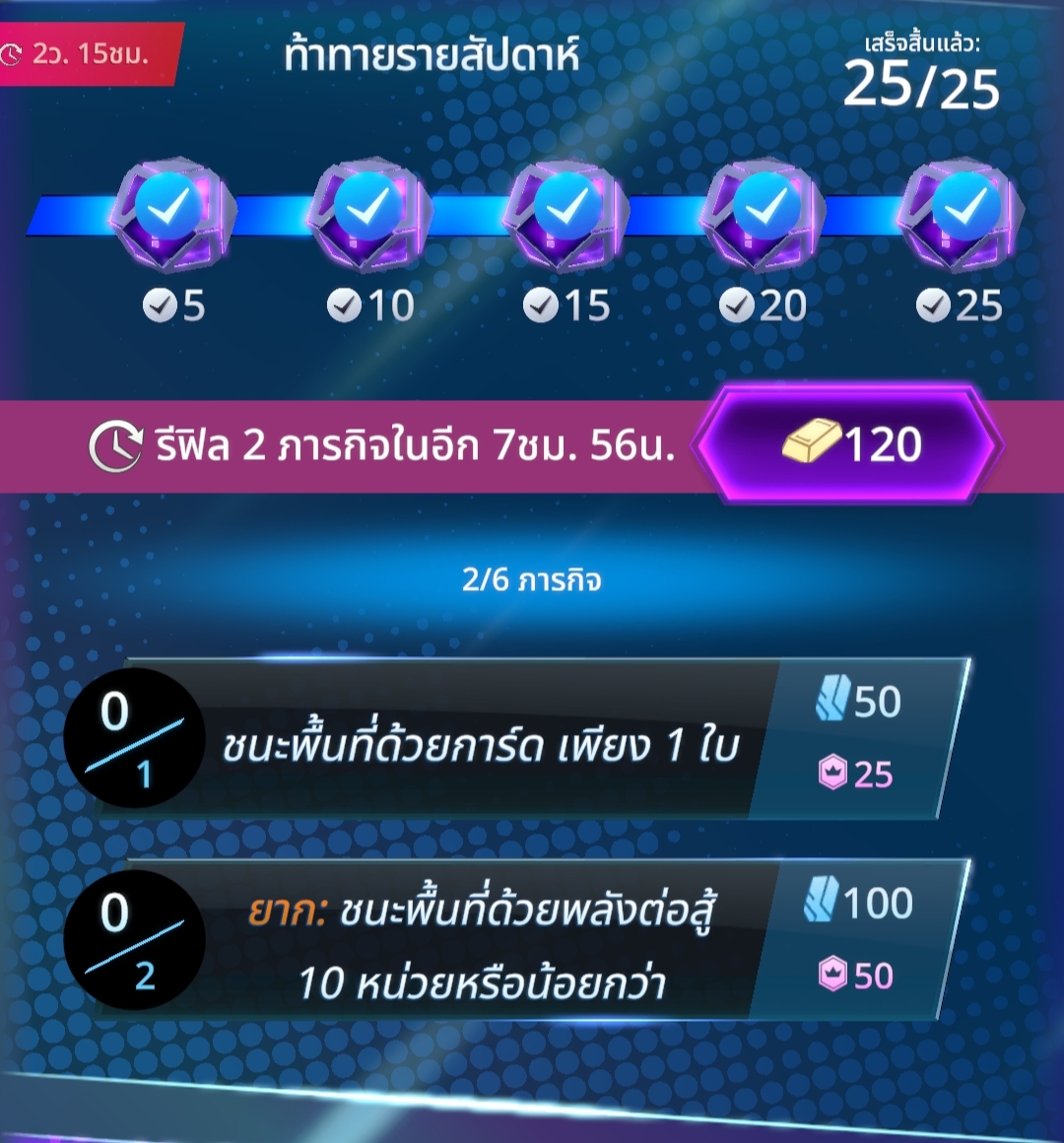 เควสมันจะรีให้เราทีละ 2 เควสครับ จากรูปได้เครดิต 150 เท่ากับการใช้โกล 120 โกลเพื่อซื้อเครดิตตรงร้านค้าเลย แต่ๆ ถ้าใช้รีภารกิจ ภารกิจมันจะได้แต้มซีซั่นพาสด้วยครับ