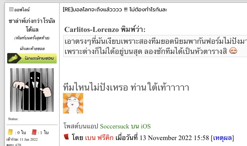 เราจะเป็นคนมีคุณภาพในสังคม ควรเริ่มที่ตัวเรา ผมไม่เคยแผล่บคอมเม้นท์เด็กหงส์ที่ไปล้อทีมอื่นเลย ยิ่งล้อตำนานทีมอื่น ยิ่งไม่ควรทำ