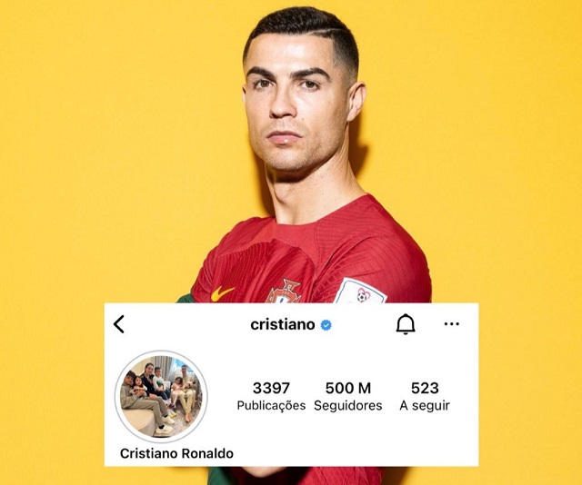 ส่ง โรนัลโด้ เป็นบุคคลรายแรกที่มียอดผู้ติดตามถึงระดับ 500 ล้าน มากกว่า ลิโอเนล เมสซี่ ซึ่งอยู่อันดับ 2 ที่มีผู้ติดตาม 376 ล้านฟอลโลเวอร์ส