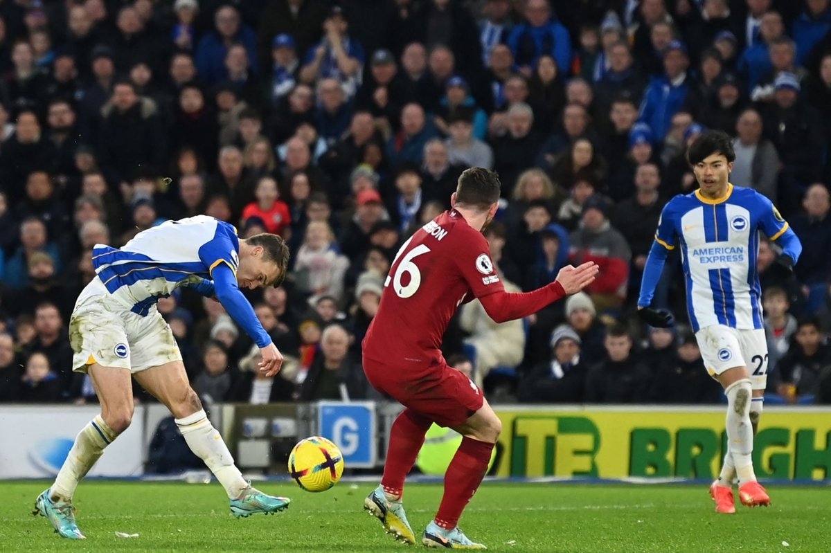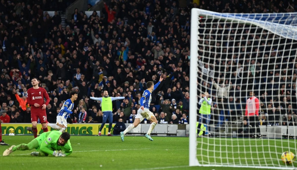 ลงมาครึ่งหลัง ไบรท์ตัน มาได้ประตูแล้ว มาติปจ่ายบอลพลาด โดนแม็ค อัลลิสเตอร์ดักได้ ก่อนที่ มิโตมะได้บอลหลุดเข้ากรอบเขตโทษด้านซ้ายก่อนจ่ายไปทางเสาไกลให้มาร์ช ยิงลอดตัวอลิสซอนเข้าประตูไป