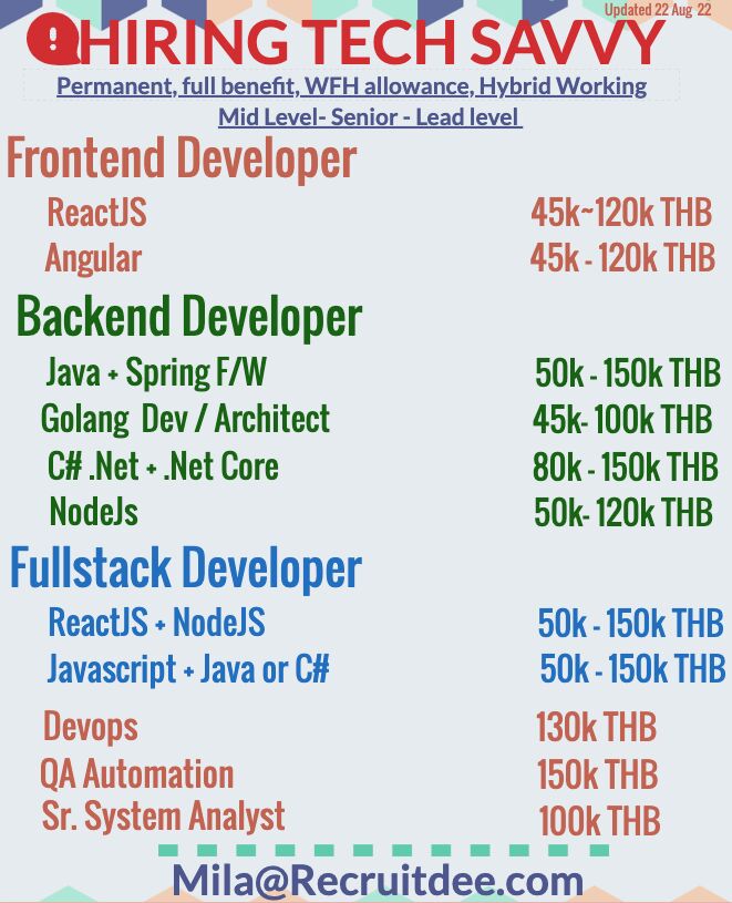 ตามนี้ครับ ที่ไทยคนเก่งๆได้ 100k - 200k อายุ 30-40 โบนัส fixed 1 เดือน + 3 เดือน