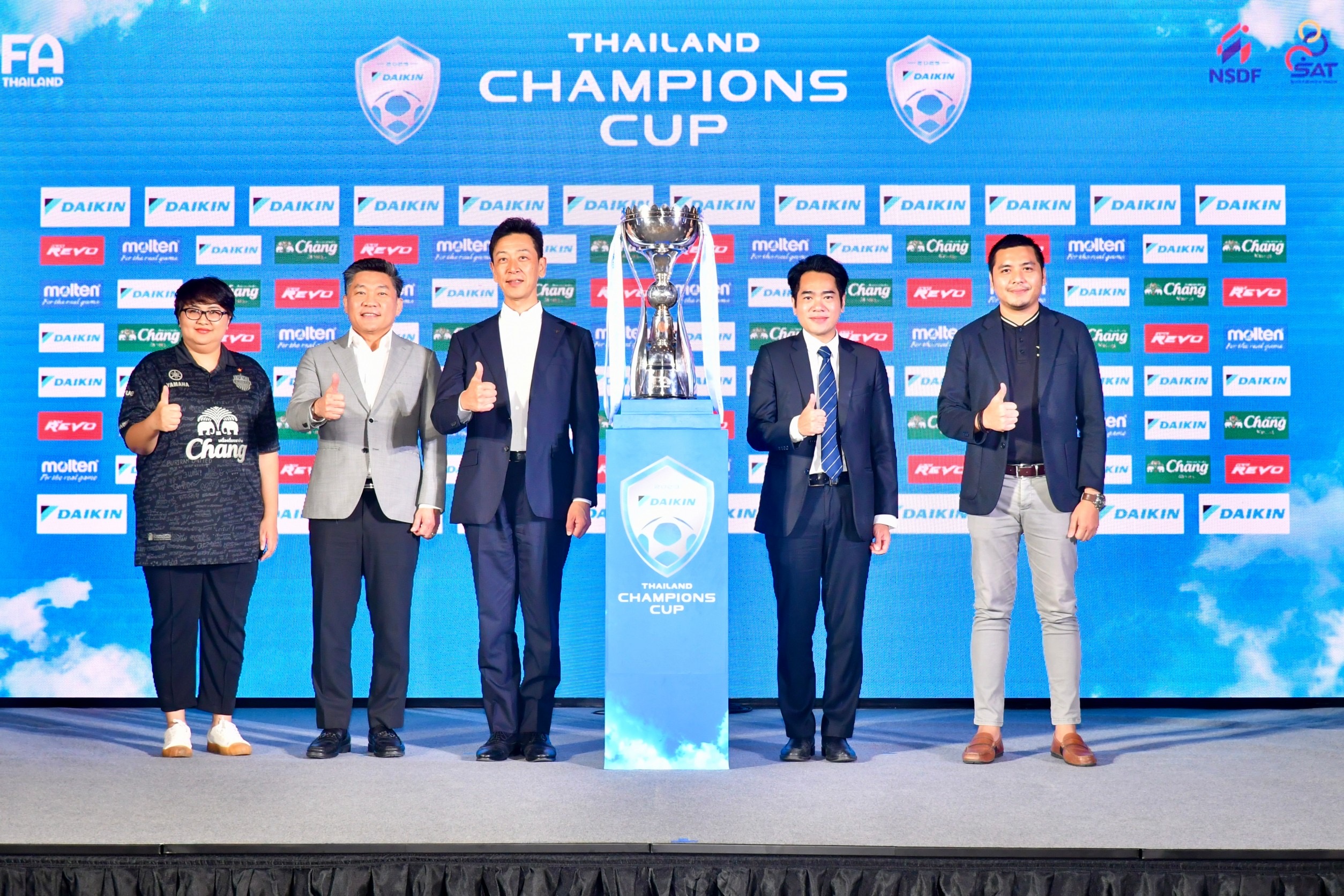 วันที่ 26 กรกฎาคม 2566 เวลา 14.00 น. ณ ห้อง Ballroom โรงแรม Hilton Sukhumvit สมาคมกีฬาฟุตบอลแห่งประเทศไทยฯ ร่วมกับ บริษัท ไดกิ้น อินดัสทรีส์ (ประเทศไทย) จำกัด จัดงานแถลงข่าวเปิดตัวการแข่งขันฟุตบอล “ไดกิ้น ไทยแลนด์ แชมเปี้ยนส์ คัพ 2023” ระหว่าง บุรีรัมย์ ยูไนเต็ด กับ ทรู แบงค็อก ยูไนเต็ด