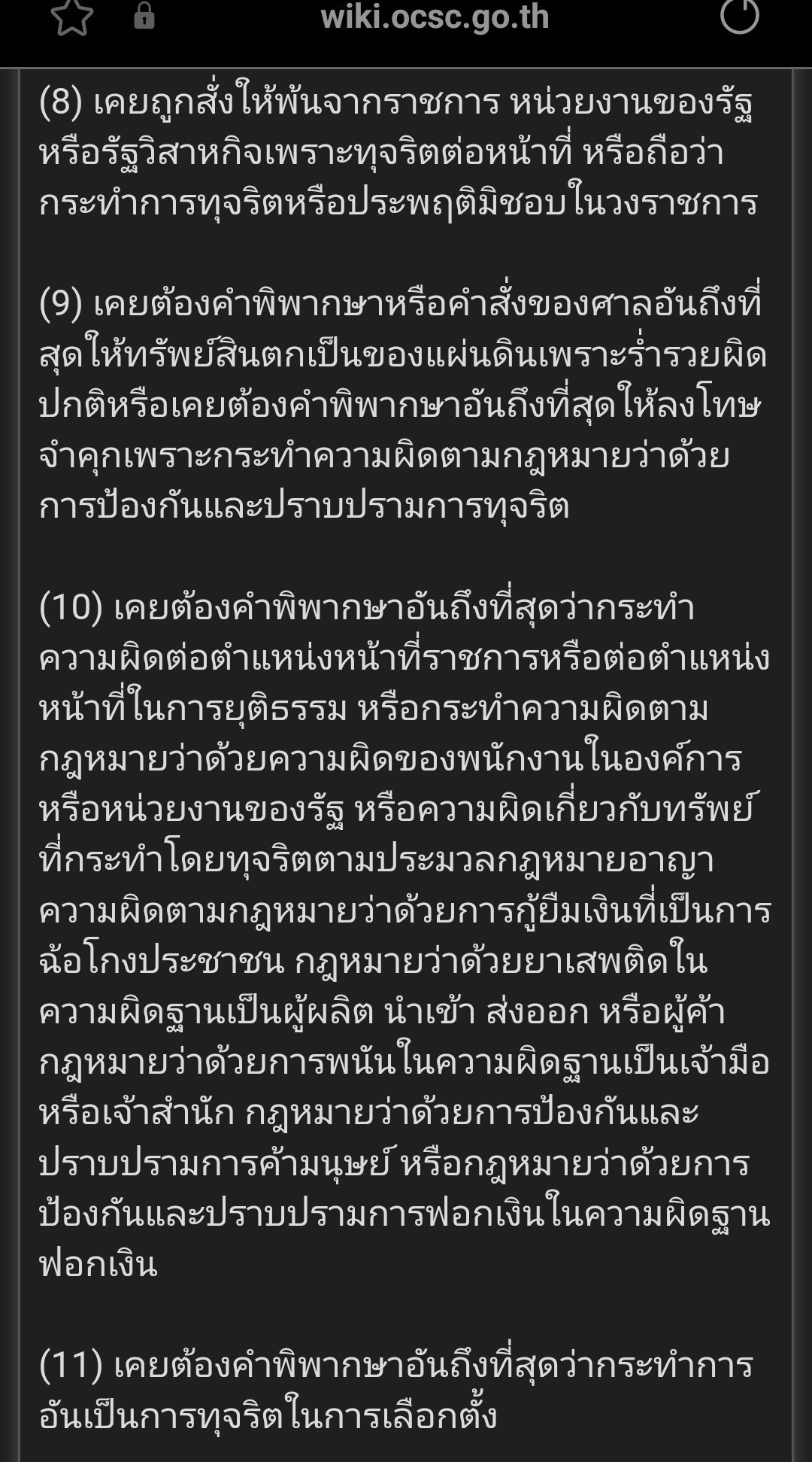 ยังไงก็ไม่เข้าข่าย แต่ของสิระ โดนคดีฉ้อโกง จะเป็นมาตรา 98(10) ) เคยต้องคำพิพากษาอันถึงที่สุดว่ากระทำความผิดต่อตำแหน่งหน้าที่ราชการหรือต่อตำแหน่งหน้าที่ในการยุติธรรม หรือกระทำความผิดตามกฎหมายว่าด้วยความผิดของพนักงานในองค์การหรือหน่วยงานของรัฐ หรือความผิดเกี่ยวกับทรัพย์ที่กระทำโดยทุจริตตามประมวลกฎหมายอาญา ความผิดตามกฎหมายว่าด้วยการกู้ยืมเงินที่เป็นการฉ้อโกงประชาชน กฎหมายว่าด้วยยาเสพติดในความผิดฐานเป็นผู้ผลิต นำเข้า ส่งออก หรือผู้ค้า กฎหมายว่าด้วยการพนันในความผิดฐานเป็นเจ้ามือหรือเจ้าสำนัก กฎหมายว่าด้วยการป้องกันและปราบปรามการค้ามนุษย์ หรือกฎหมายว่าด้วยการป้องกันและปราบปรามการฟอกเงินในความผิดฐานฟอกเงิน