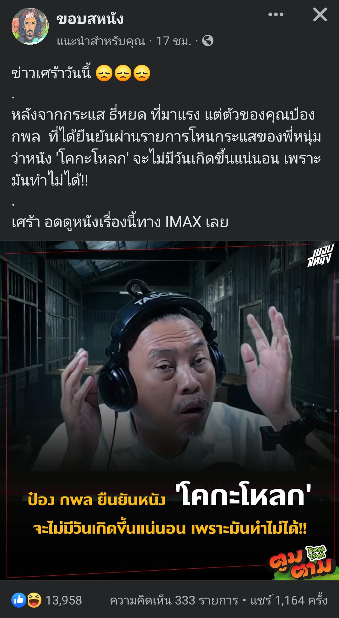 [RE: ป๋อง กพล ยืนยันหนัง 'โคกะโหลก' จะไม่มีวันเกิดขึ้นแน่นอน]