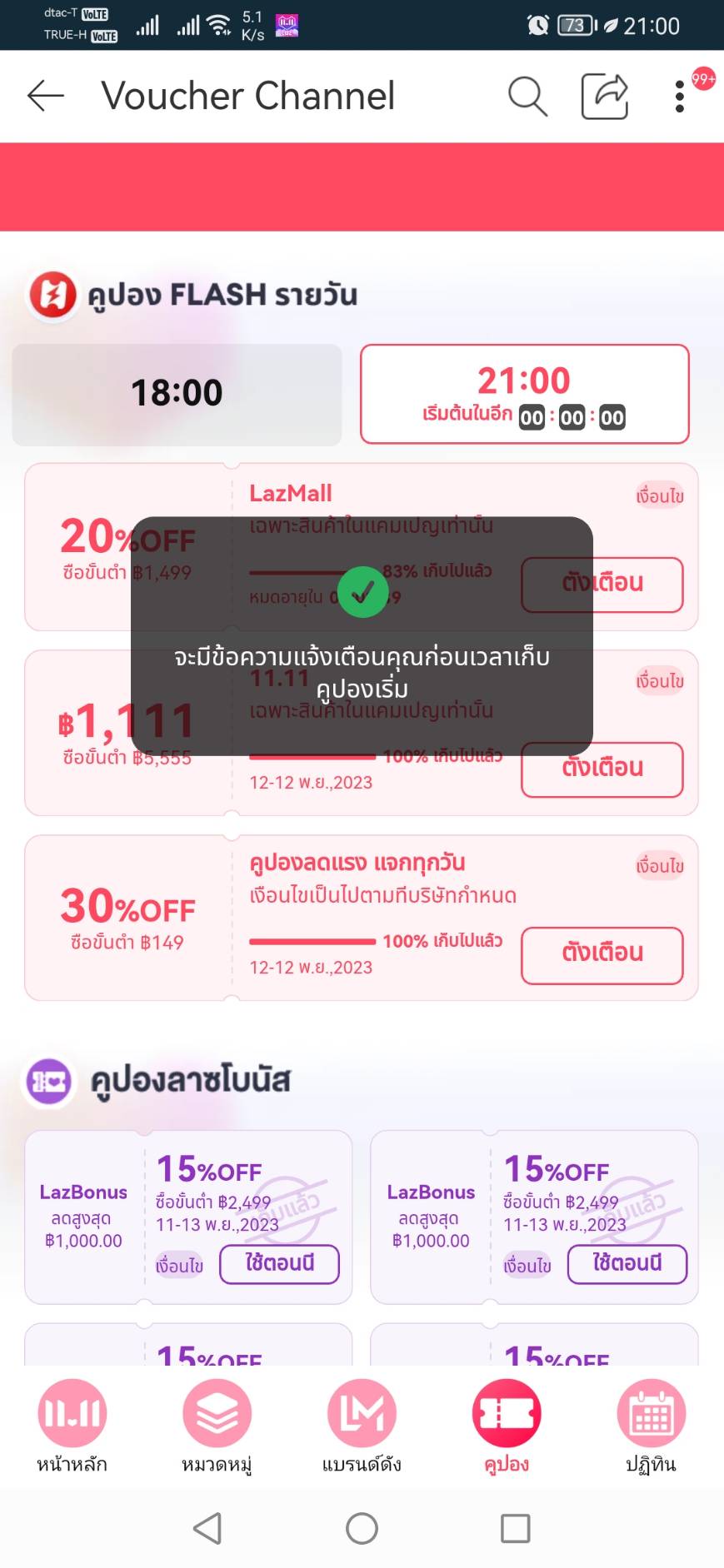 ส่วนตัวไม่ได้มีกำลังซื้อของใหญ่ กดโค๊ด ลด 30 % มาตั้งแต่ต้นเดือน กดมาเรื่อยๆ จนถึง 11.11 รู้สึกกดยากมาก ถึงเวลา โค๊ดหมดทันที