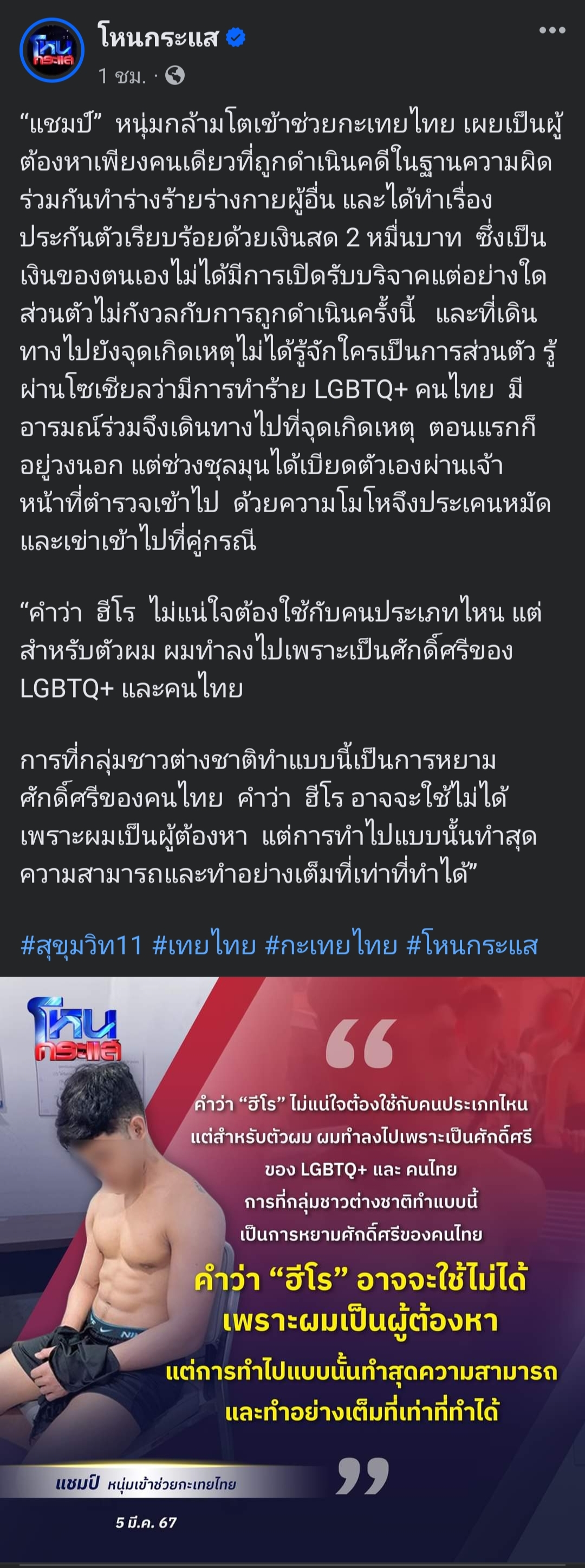 [RE: "แชมป์" หนุ่มนักกล้ามโตช่วยกะเทยไทย เป็นผู้ต้องหาคนเดียวที่ถูกดำเนินคดี]