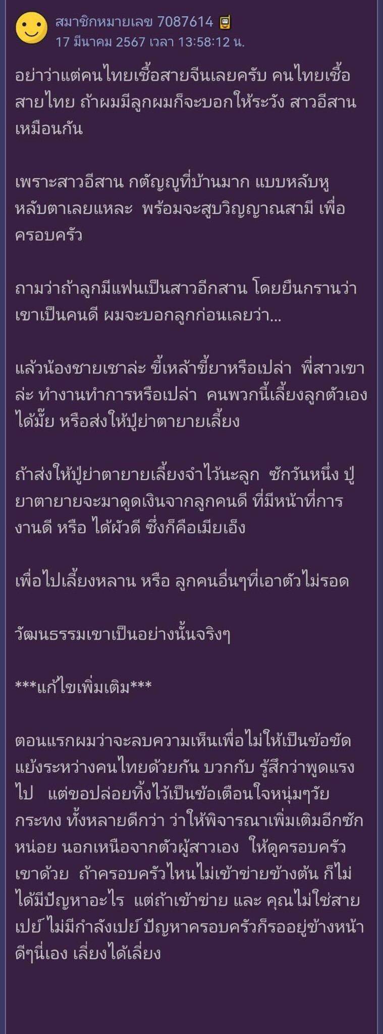 นี้มันยุคไหนกันแล้วครับ ยังดูถูกผู้หญิง คนอีสานกันอยู่อีก คน PANTIP นี้มันจริงๆ