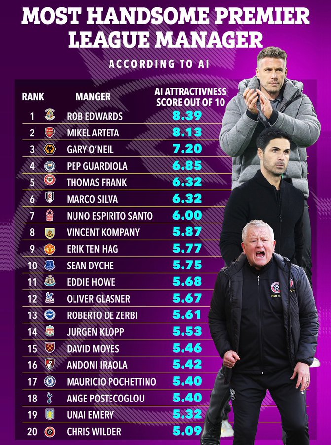 AI คงไม่ชอบหุ่นหมีๆเคราๆ คล็อป อังเก้ พอช อยู่ท้ายๆเลย