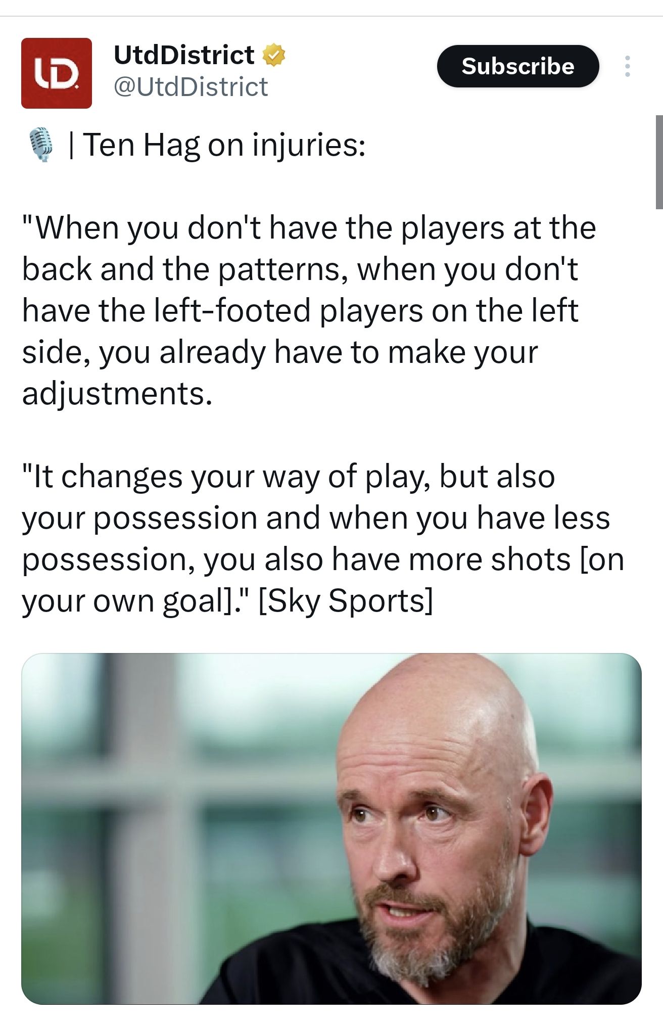 อันนี้ในมุมเข้าข้างเทนฮากนิดหน่อยนะ มาติเนซคือแทบจะเป็นคีย์แมน no.1ของแผน แต่พอตัวno.1เจ็บอะไรๆก็มันยากแหละ เข้าใจความรู้สึกจากการขาดไปของซาลิบา
