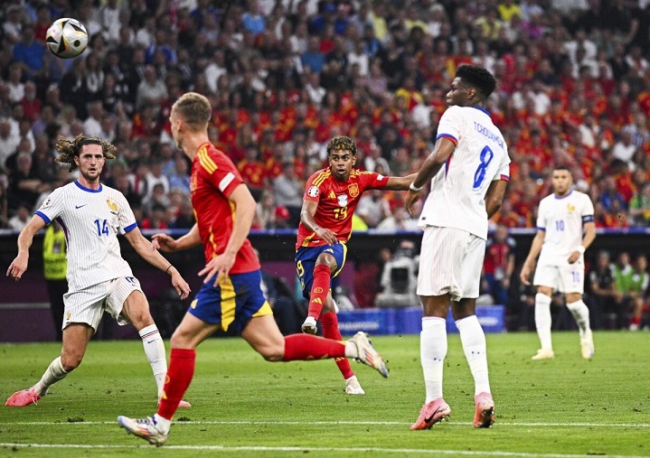 สเปน พบกับ ฝรั่งเศส ในรอบรองชนะเลิศและเป็นฝ่ายตามหลังตั้งแต่เริ่มเกม ก่อนที่ ยามาล จะมายิงประตูสุดสวยช่วยทีมตีเสมอ