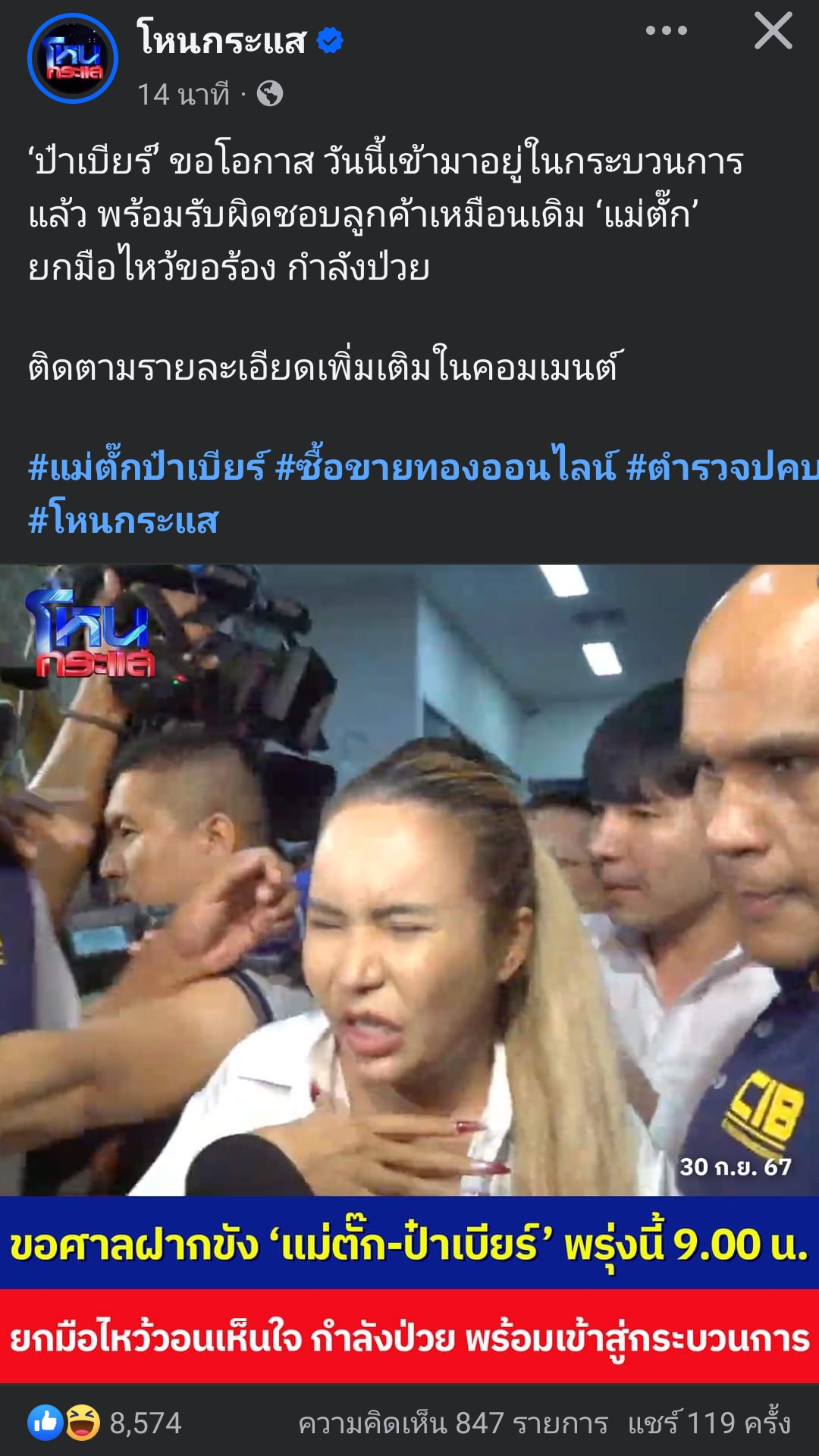 [RE: ป๋าเบียร์ ขอโอกาส แม่ตั๊กยกมือไหว้ กำลังป่วย พร้อมเข้าสู่กระบวนการ]