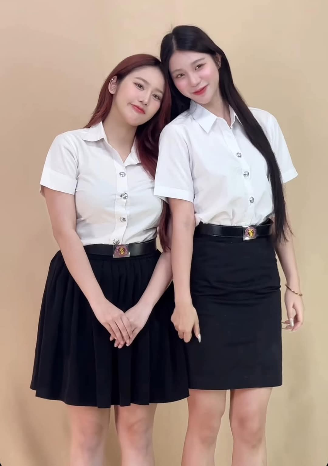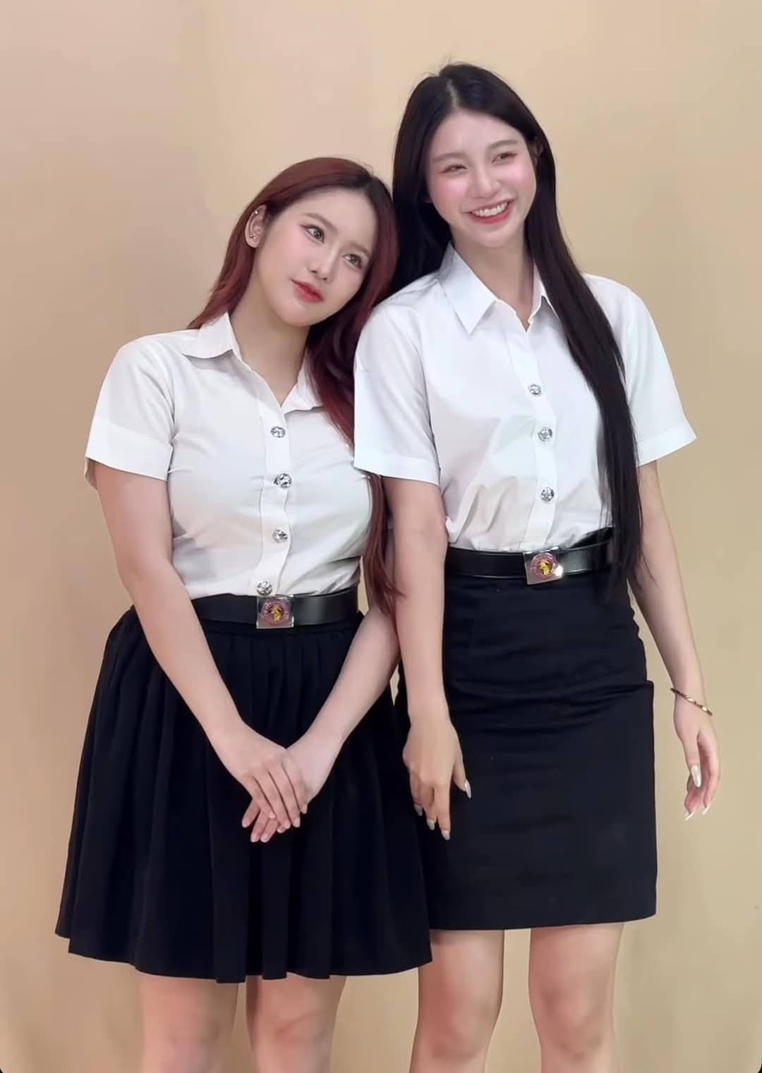 คนนึงล้นจนออกข้าง ส่วนอีกคนใส่ชุดที่ไปงานดูตูม แต่พอชุดนี้หายหมด