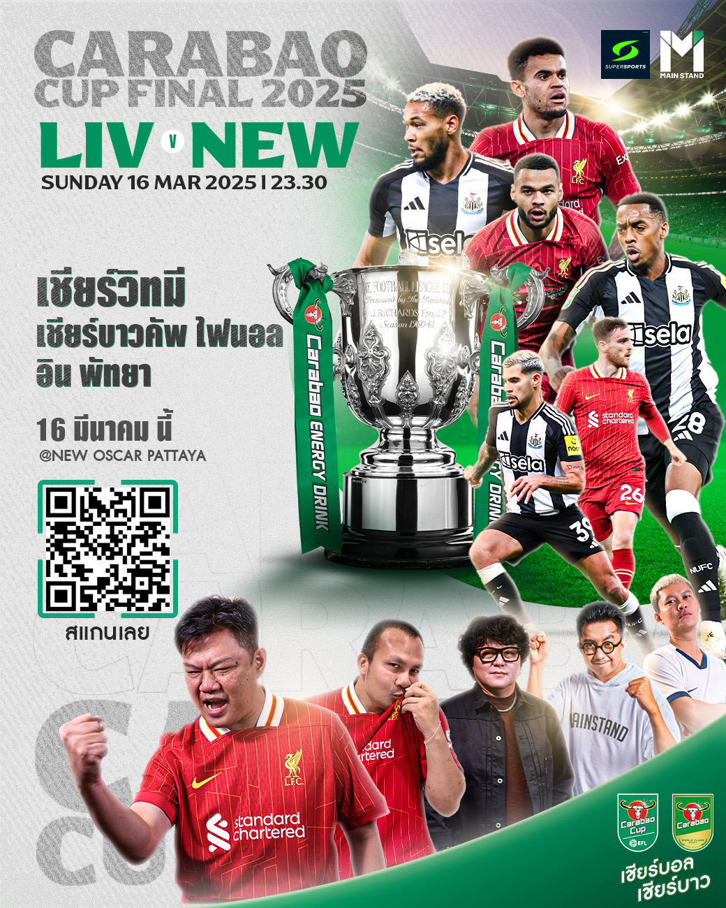 แฟน ๆ เมนสแตนด์และ พี่ยักษ์ พี่เม้ง ชาวตะวันออกห้ามพลาด เตรียมเชียร์แมตช์แห่งศักดิ์ศรี นัดชิงคาราบาว คัพ สุดคลาสสิคแห่งลูกหนังอังกฤษ "หงส์แดง" ลิเวอร์พูล ปะทะ "สาลิกาดง" นิวคาสเซิล
