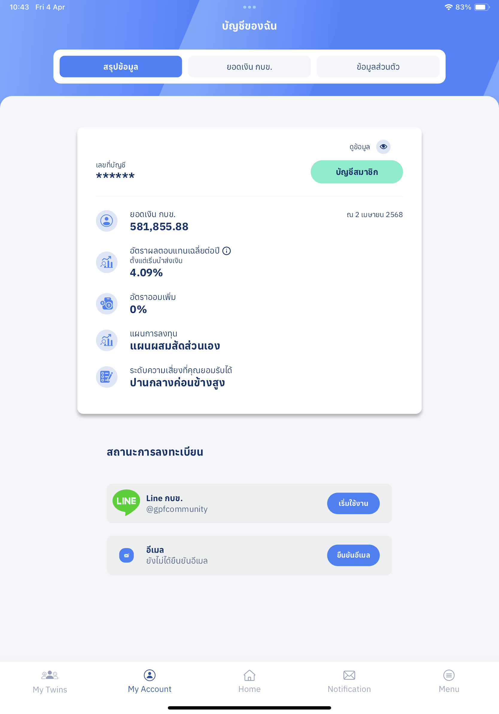 ผมก็เลยไปโหลดแอพมาใส่ไว้ใน iPad ของผม (ต้องเอา OTP จากเบอร์แม่ **ผมอ้างว่าเอาโทรศัพท์มาอัพ iOS) แล้วก็เข้าไปดู ปรากฎว่าแม่ผมไม่เคยส่งเงินสมทบเข้าไปเลย และผลตอบแทนเฉลี่ยอยู่แค่ 2-3% ต่อปี รับราชการมาตั้งแต่ปี 2543 ส่งเงินสมทบแค่เดือนละพันนิดๆ+ของรัฐ เป็น 2,700 บาท เลือกแผนตราสารหนี้อย่างเดียว มีมูลค่าพอร์ตประมาณ 560K แล้วอีก 8 ปีจะเกษียรแล้ว