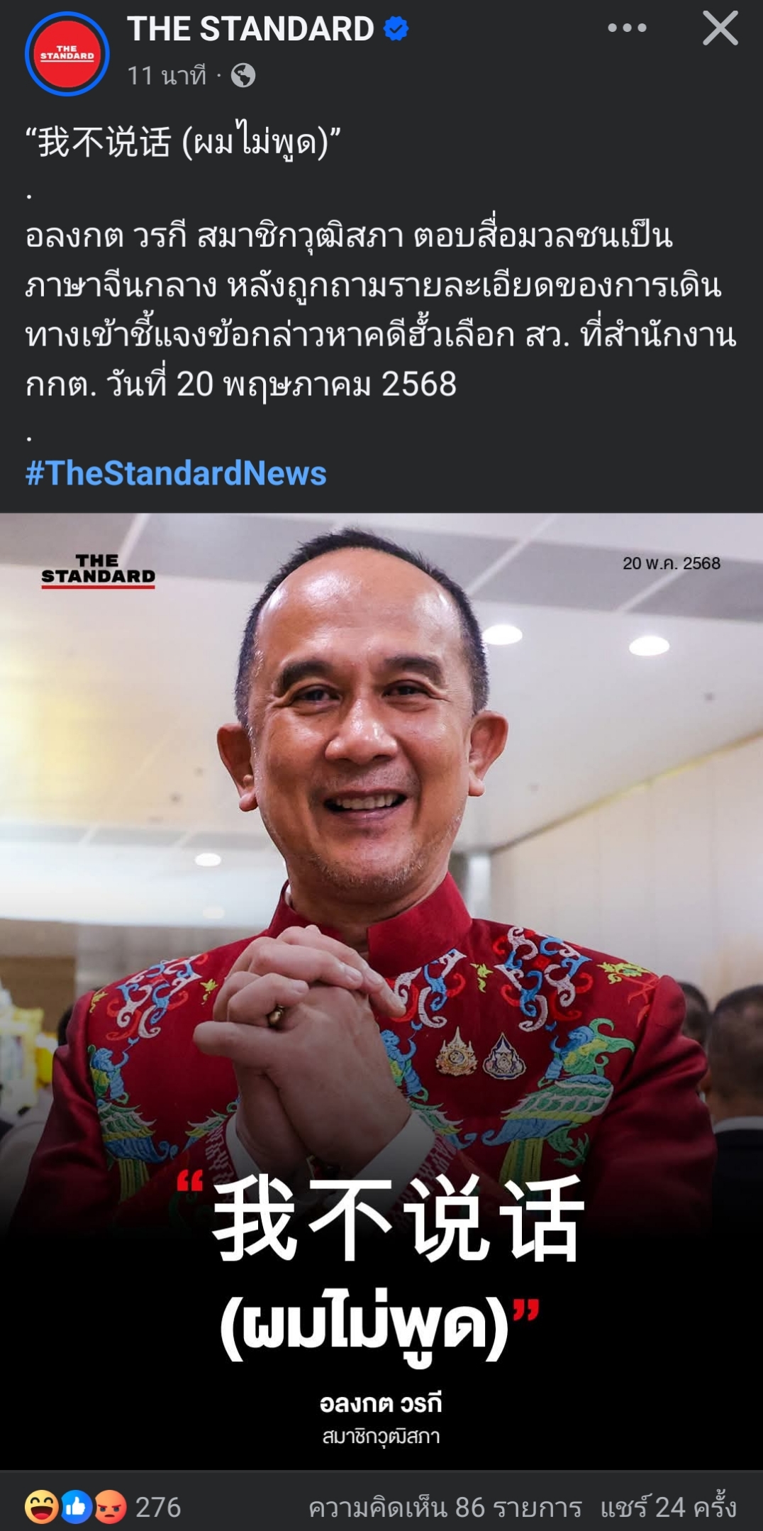 [RE: สว.อลงกต ตอบสื่อเป็นภาษาจีนกลาง หลังถูกถามรายละเอียดคดีฮั้ว สว.]