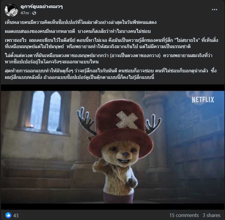 [RE: (SS Poll) คุณชอบดีไซต์ Chopper ใน One Piece Live Action หรือไม่ ?]