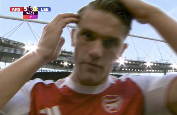 อาร์เซนอลออกสตาร์ตเกมดีกว่าลีดส์ทุกอย่าง พับสนามบุกอยู่ข้างเดียวและมีลุ้นทำประตูจากโอเดการ์ด ยิงถากเสาหลังนิดเดียว