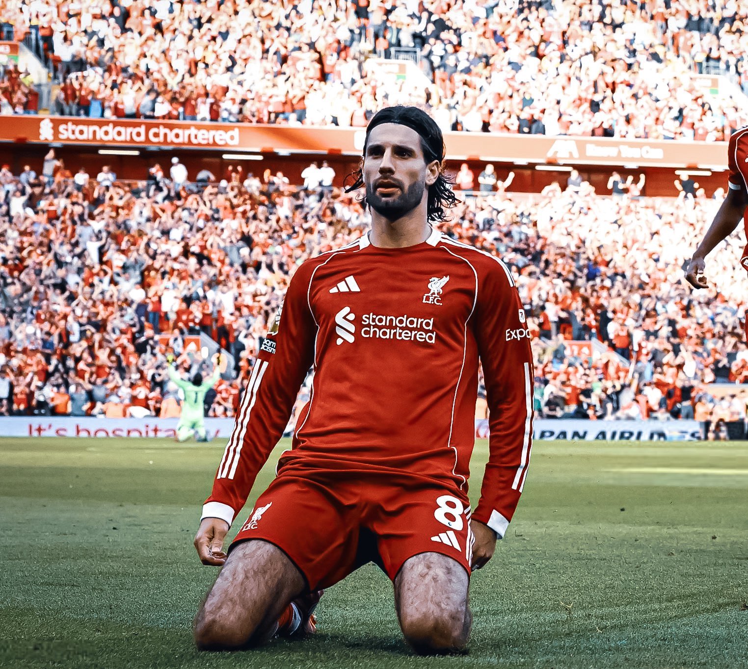 รายาจ่ายบอลพลาดโดนฟาน ไดจ์ขึ้นมาตัดได้แต่จังหวะยิงไม่มีสุดท้ายบอลมาถึงแม็ค อัลลิสเตอร์ซัดไปติดบล็อค